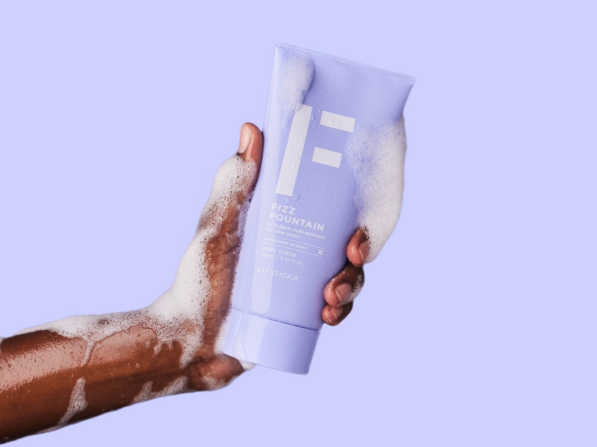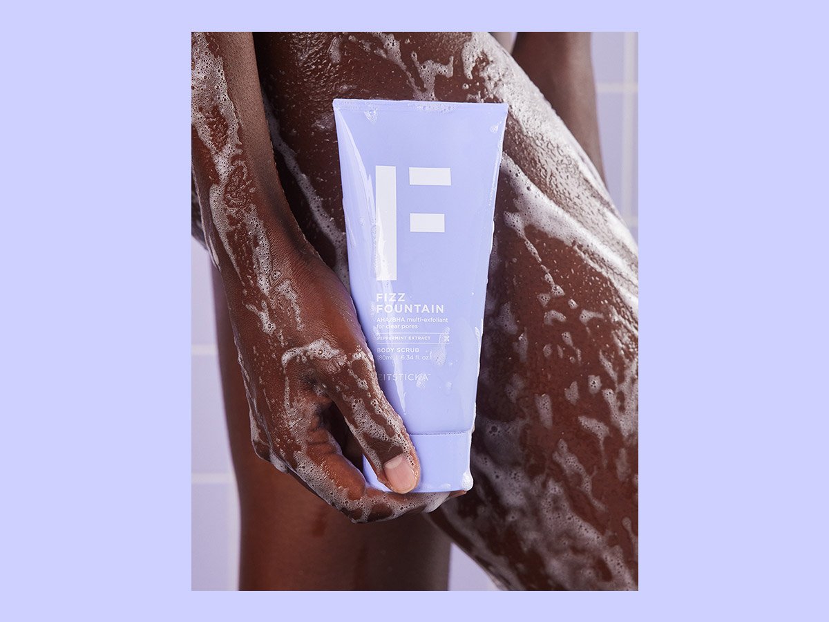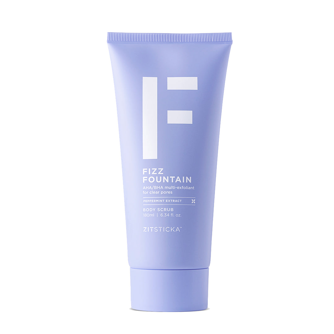 FIZZ FOUNTAIN is a hybrid of chemical and physical exfoliants, this supercharged body scrub refines and retexturizes. Salicylic, lactic and glycolic acids wiggle inside your pores to clear dirt and debris, while superfine pumice grains and bamboo powder gently slough away dead surface skin. Niacinamide then joins the party to diffuse the appearance of redness and irritation.