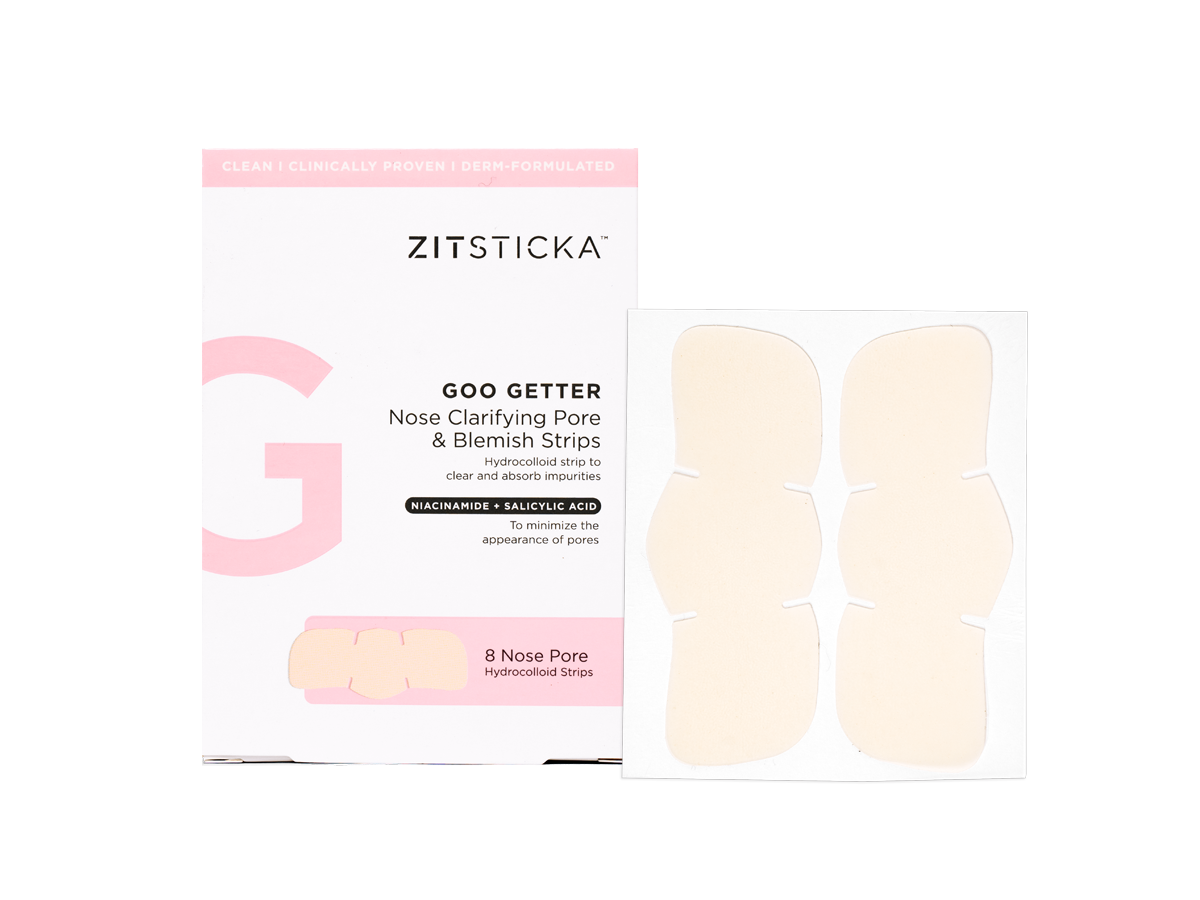 Yes! These targeted extraction strips take the original GOO GETTER formula and transform it into the perfect shape for your nose. Gone are the days of harsh nose strips that damage your skin. Crafted from hydrocolloid infused with dermatologist-backed ingredients, these gentle strips adhere seamlessly to your nose, feeling like a second skin. They remove effortlessly without any tearing or tugging. Once all that unwanted goo is gone, your pores will visibly appear minimized.